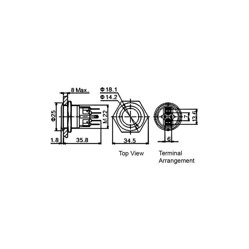 PULSANTE ANTIVANDALICO LUMIN. LED BLU 24dc/ac N.A/N.C FORO D.22mm 5A250V
