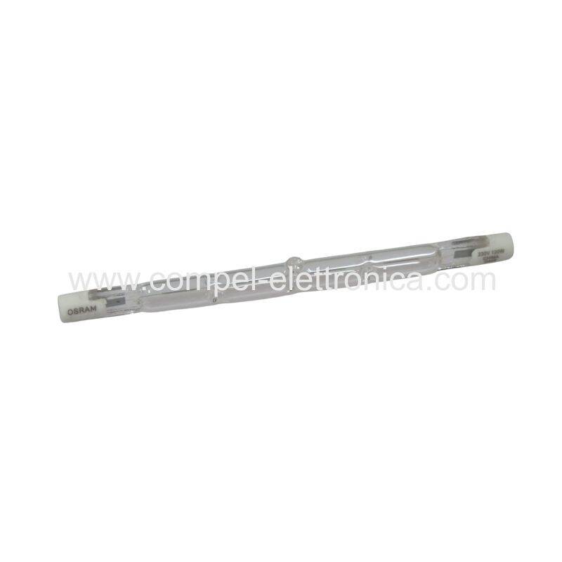 Descrizione: Lampada alogena lineare trasparente OSRAM da 120W, attacco R7S, 2245 lumen e consumo energetico di 120 watt.