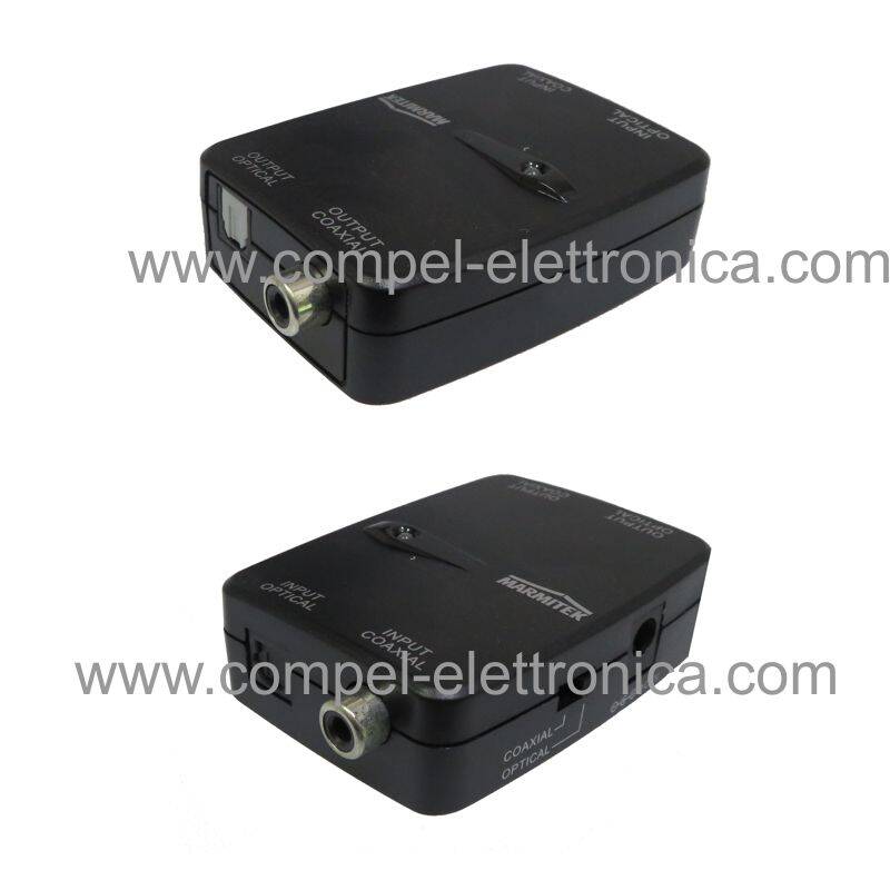 Converte e amplifica il segnale audio DIGITALE TOSLINK (FIBRA OTTICA) a coassiale digitale COAXIAL (o viceversa) bidirezionale.