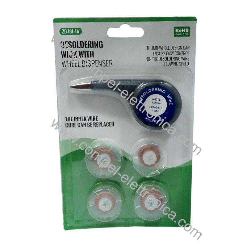 Descrizione: KIT 4 1 con EROGATORE Treccie dissaldanti composta da fili di rame ultrasottili ZD-181-4A 1MM