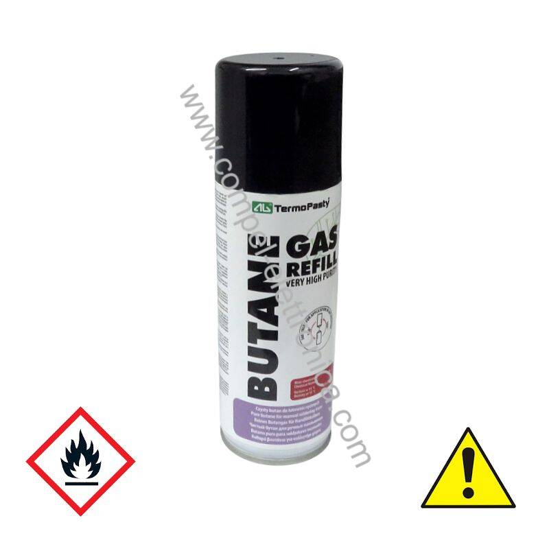 Descrizione: Gas butano puro in lattina da 200ml - per saldatori a gas