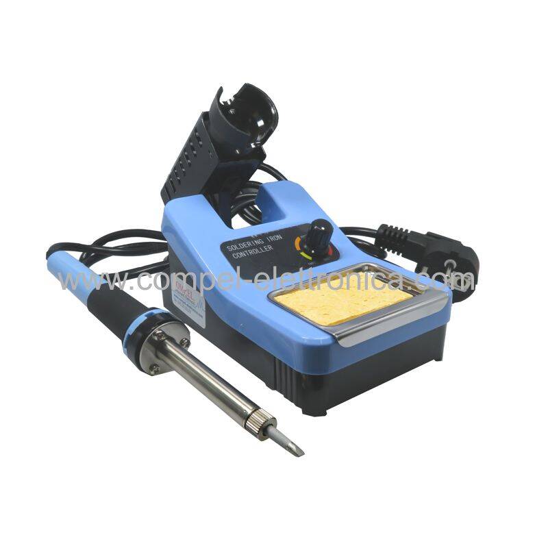 Stazione saldante a temperatura controllata, con cassetto estraibile sulla base per