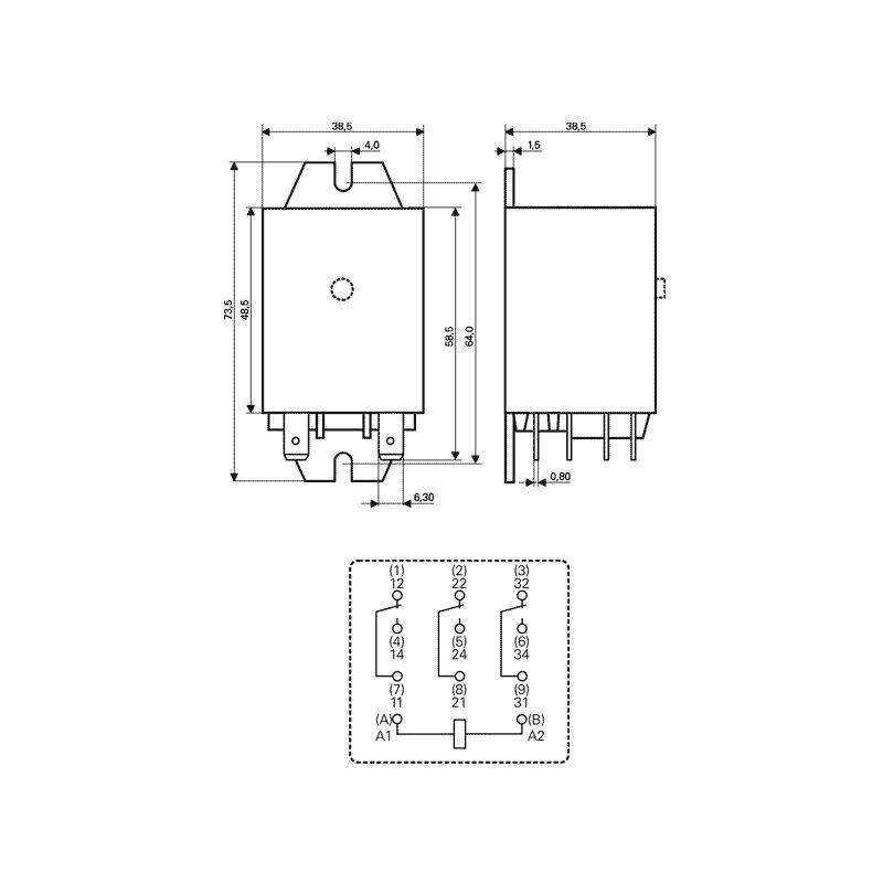 RELÈ RM705524 24Vac 16A 3PDT A FASTON 2,86/6,35mm
