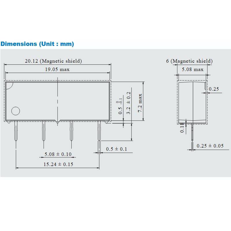 Dimensioni: 19,05x5,10 mm altezza 5,10 mm