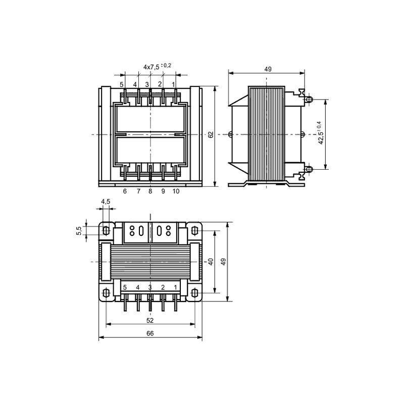 Descrizione: Trasformatore di alimentazione di potenza doppio secondario