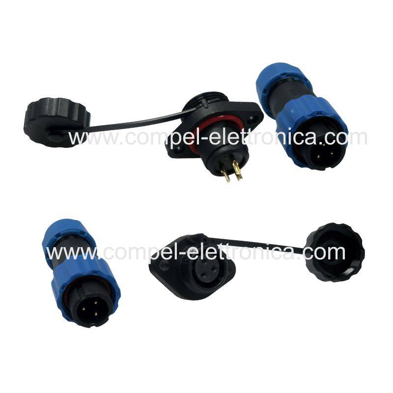 Descrizione: Connettore waterproof Spina SP13 volante maschio 3 poli e Presa SP13 pannello femmina 3 poli