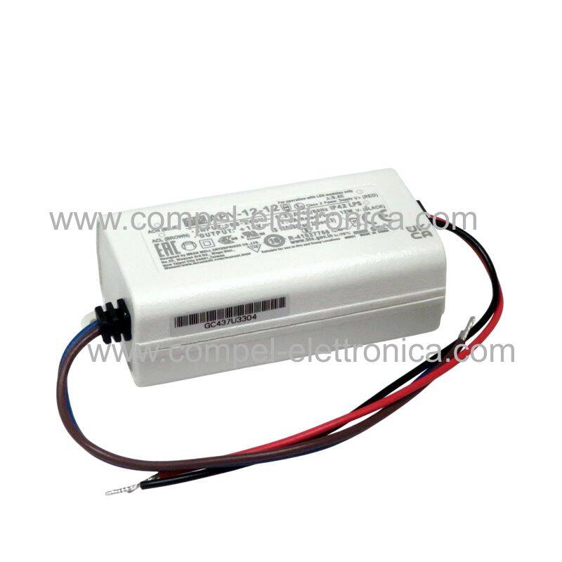 Descrizione: Trasformatore LED a tensione costante, 12VDC, MEAN WELL funzioni di protezione in un alloggiamento in plastica completamente isolato. Con dimensioni piccole e compatte, questi alimentatori sono raffreddati per convezione libera dell'aria e hanno un design IP42, che li rende adatti per applicazioni LED e di illuminazione come le insegne pubblicitarie.