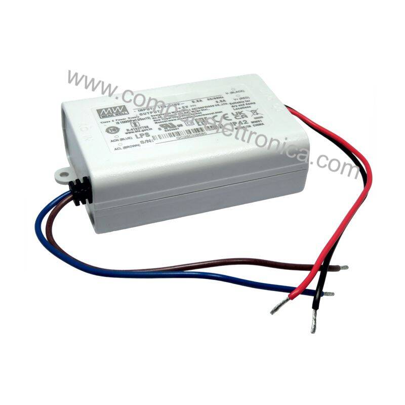 Descrizione: Trasformatore LED a tensione costante, 5VDC, MEAN WELL funzioni di protezione in un alloggiamento in plastica completamente isolato. Con dimensioni piccole e compatte, questi alimentatori sono raffreddati per convezione libera dell'aria e hanno un design IP42, che li rende adatti per applicazioni LED e di illuminazione come le insegne pubblicitarie.
