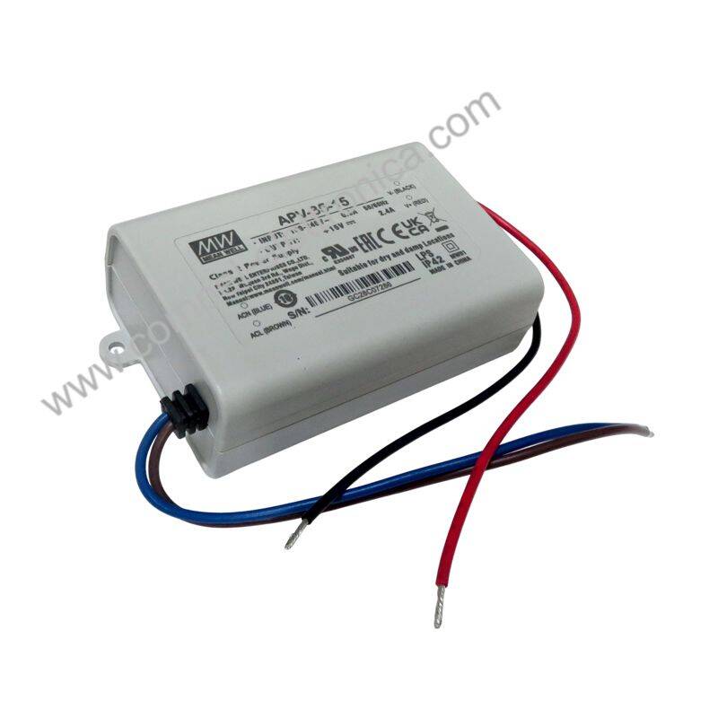 Descrizione: Trasformatore LED a tensione costante, 15VDC, MEAN WELL funzioni di protezione in un alloggiamento in plastica completamente isolato. Con dimensioni piccole e compatte, questi alimentatori sono raffreddati per convezione libera dell'aria e hanno un design IP42, che li rende adatti per applicazioni LED e di illuminazione come le insegne pubblicitarie.